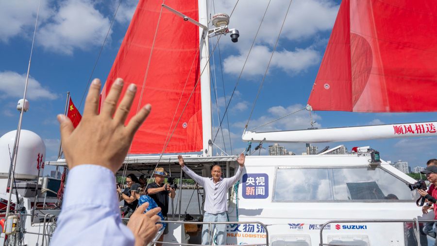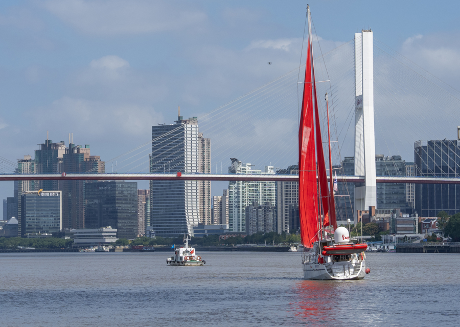 “再见!”“一路平安!”今天11时许,一艘张着红色双风帆的帆船缓缓驶出上海白莲泾码头,人们的祝福声此起彼伏。甲板上,被称作“中国鲁滨逊”的“环球航海中国第一人”翟墨,对着欢送人群不断挥手告别。此次航程中,他将带领船员开启为期360天、总航程超3.6万海里的征程,向人类首次无动力帆船环航南极洲纪录发起挑战。