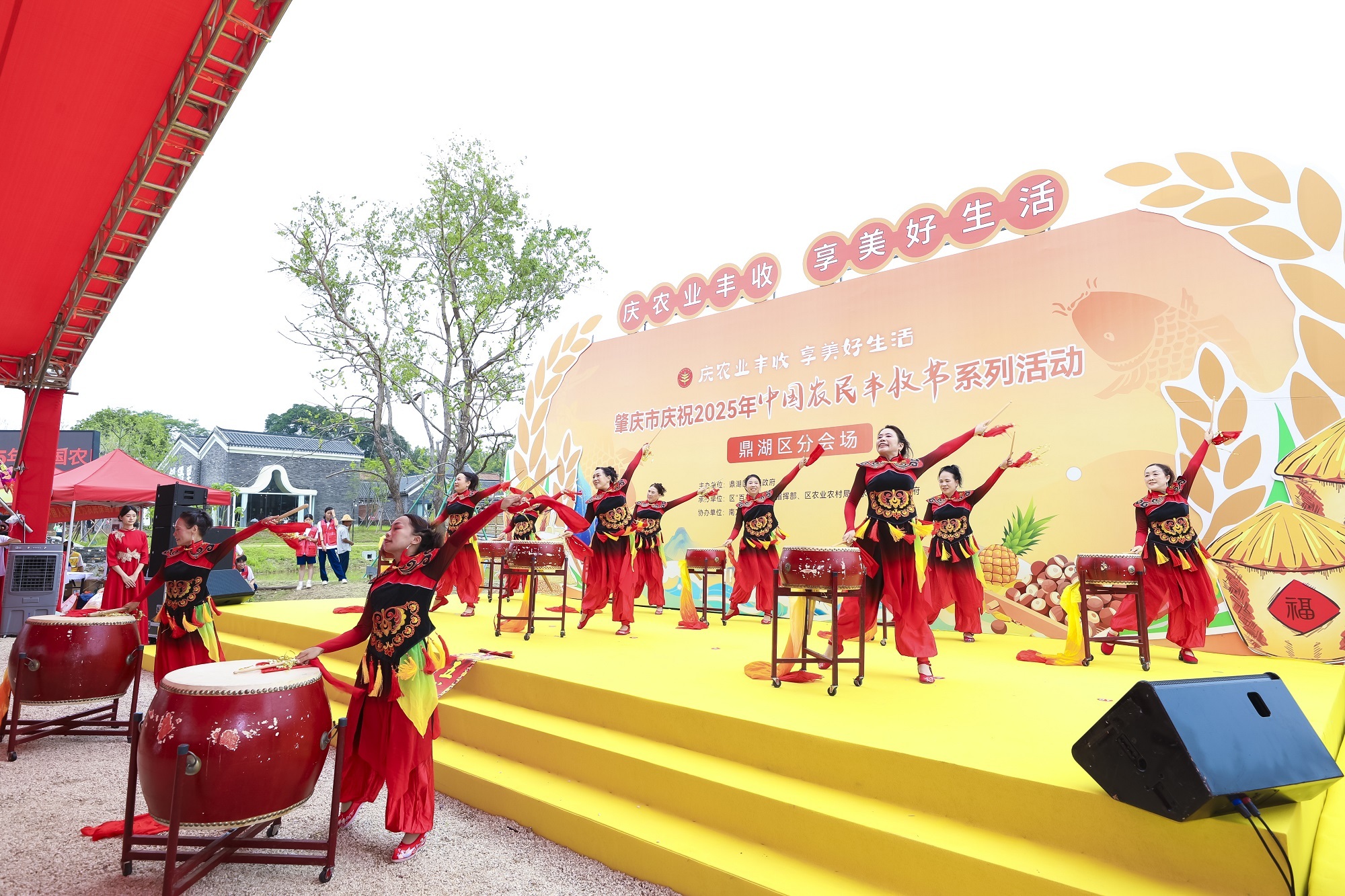 鼎湖分会场农民群众的鼓声为丰收庆典揭开帷幕。