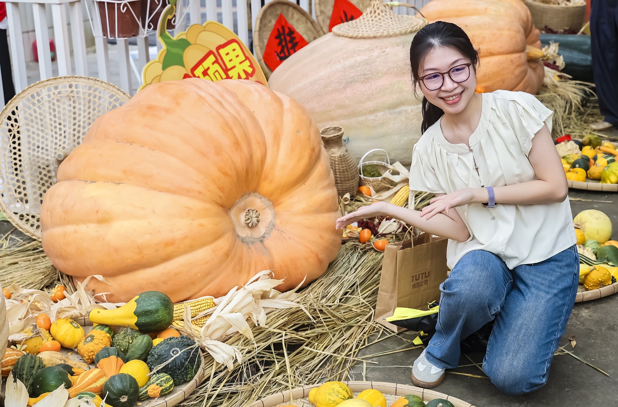 活动现场,巨型南瓜引来观众争相合影。